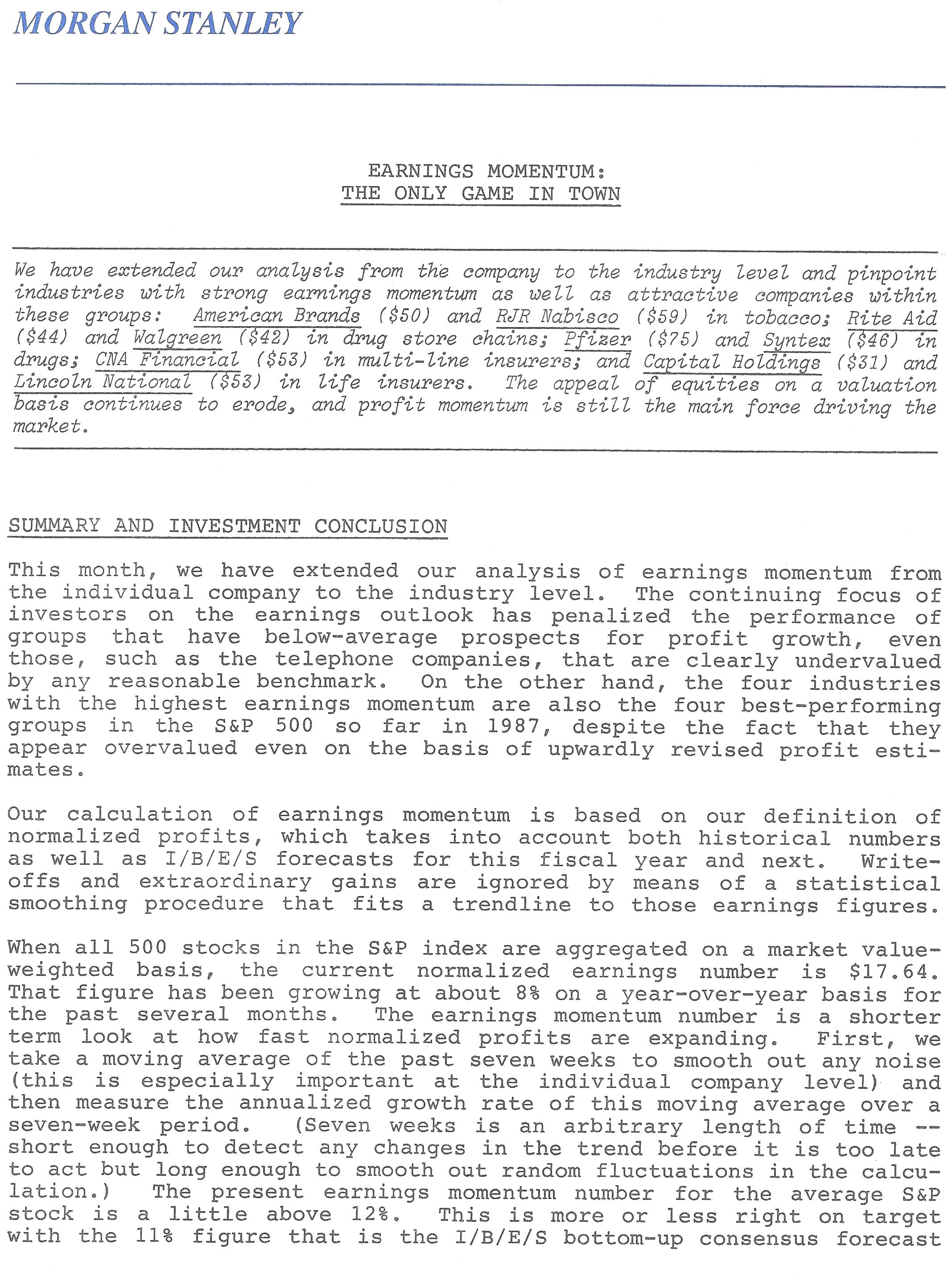 I was a quantitative analyst in the equity research department, so numbers were my thing. My clients were mostly tax-exempt institutions such as foundations or pension funds. I used statistical computer models to find opportunities for my clients, recommending individual companies or sectors of the stock market that I found to be both undervalued and poised for recovery.