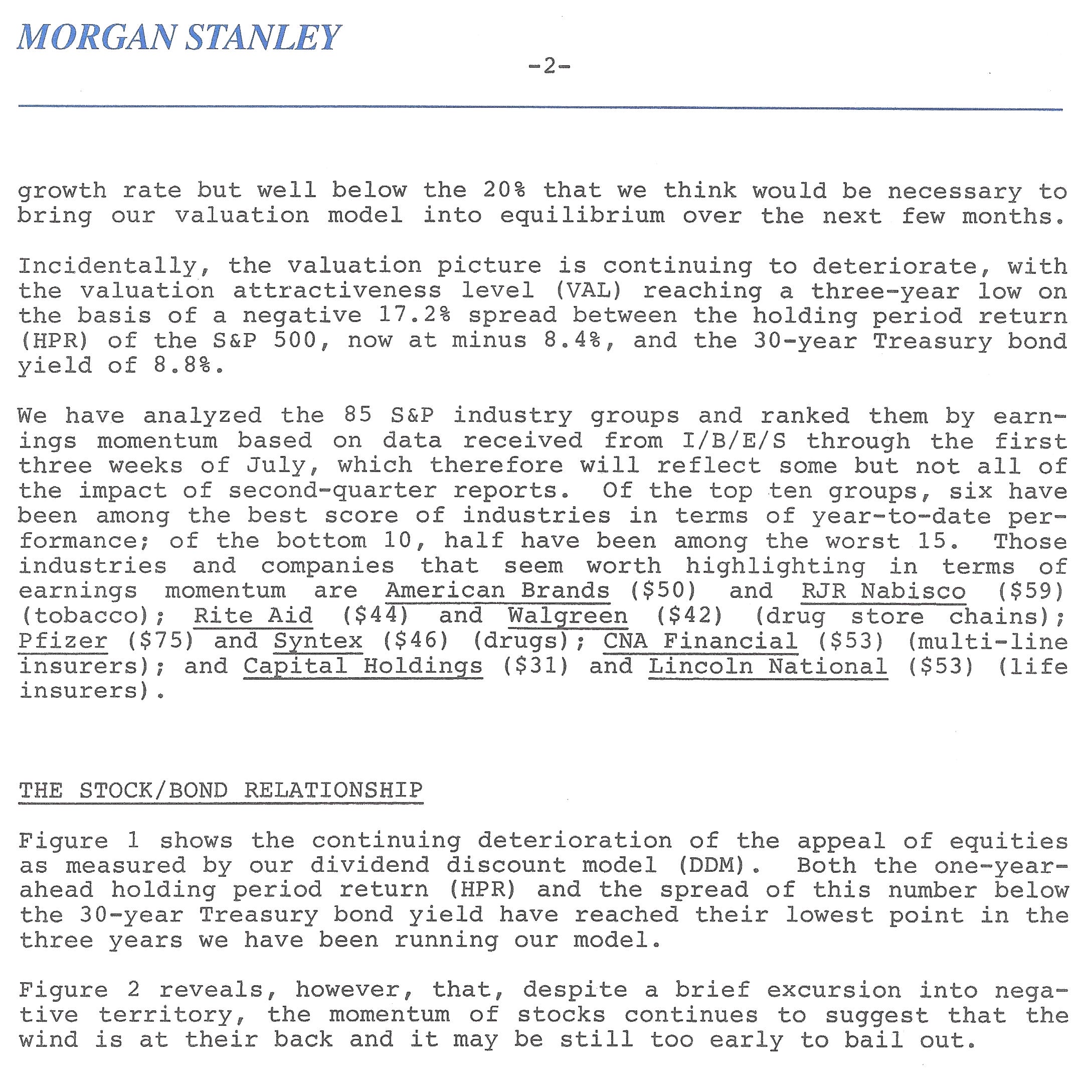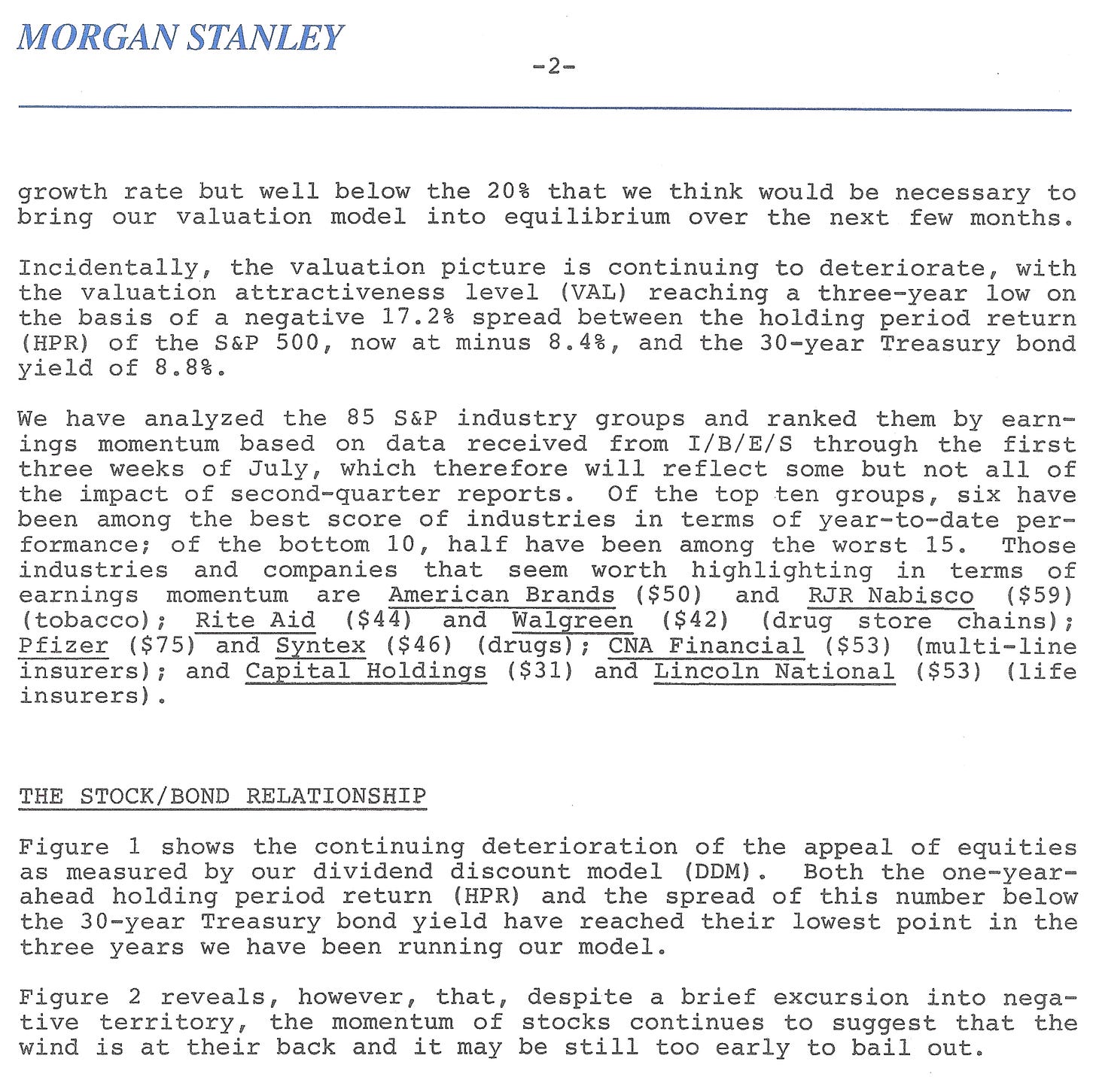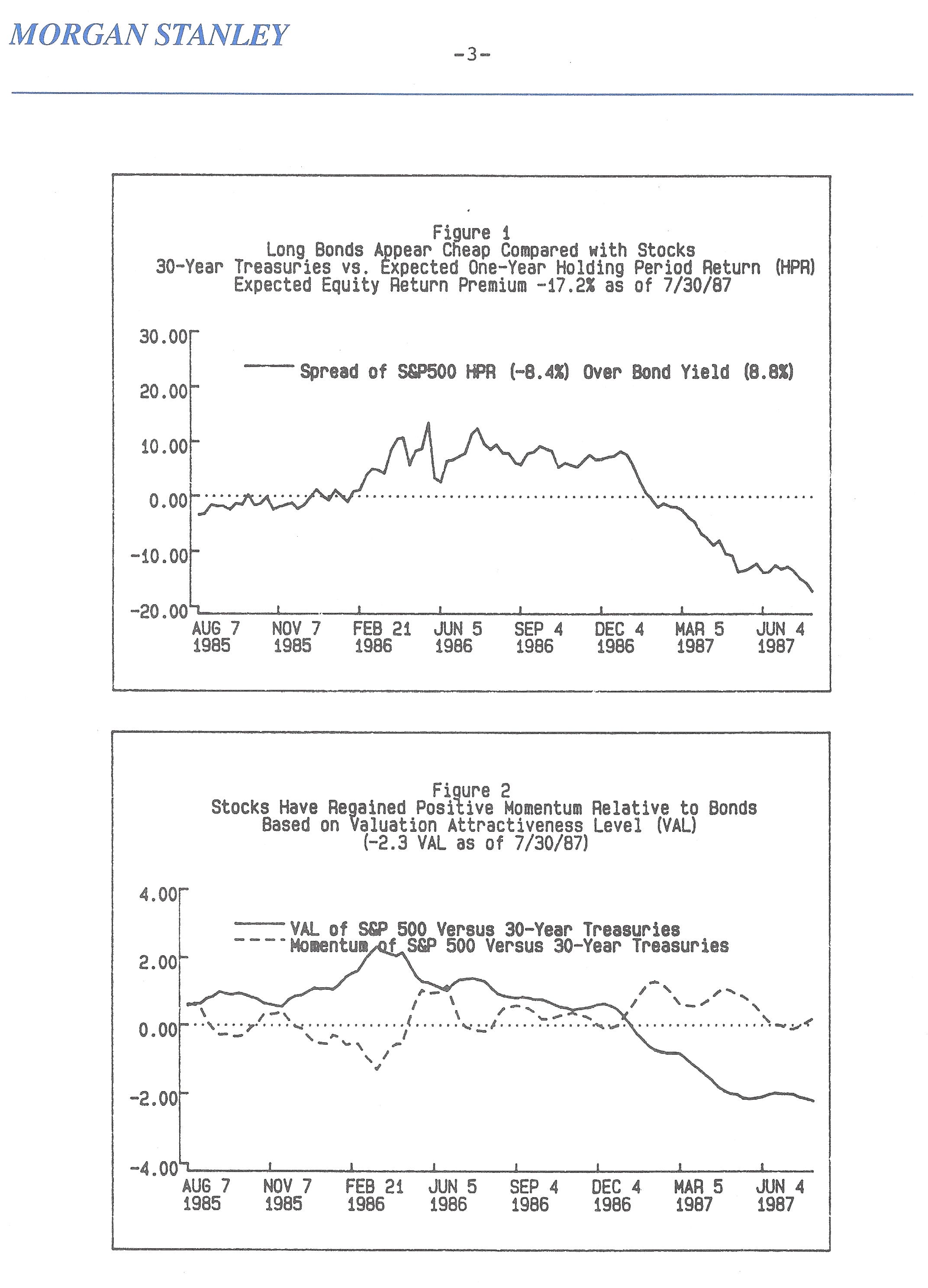 I also studied the prospects of the stock market relative to the bond market, feeding into a process called asset allocation. Alarm bells were ringing, as my models were signaling that stocks were at historically dangerous levels. I made no bones about saying so to my clients.